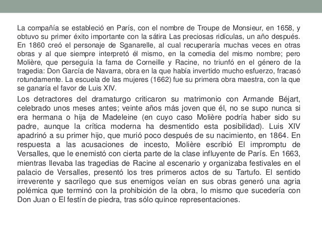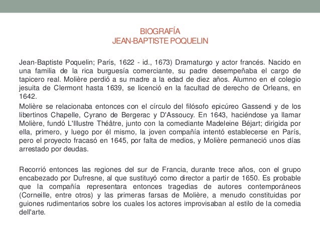 Y en los dos siguientes una sala de casa particular. Tras crear una. Jean-Baptiste Poqueln naci en Pars en 1622 en el seno de una familia burguesa es educado en humanidades y en derecho orientndose personalmente hacia el teatro.
