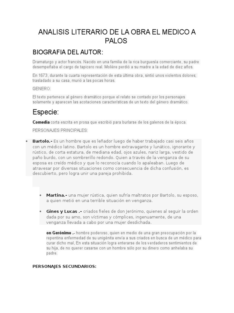 Analisis Literario De La Obra El Medico A Palos