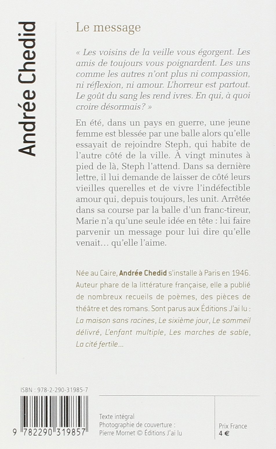 Amazon Fr Le Message Chedid Andree Livres