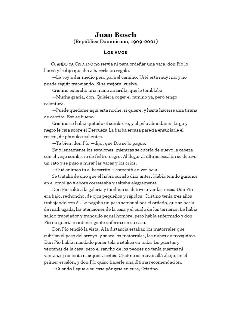 GUA DE ANLISI DE LA OBRA. Juan Bosch narraciones relatos cuentos el cuento dominicano historia del cuento el arte de escribir cuentos Trujillo Balaguer. Juan Emilio Bosch Gavio 30 de junio de 1909 - 1 de noviembre de 2001 fue un cuentista ensayista novelista narrador historiador educador y poltico.