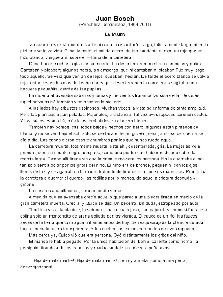 La Mujer b Datos biogrficos del autor. Cuento - Texto completo Juan Bosch. Anlisis del cuento La mujer de Juan Bosch.