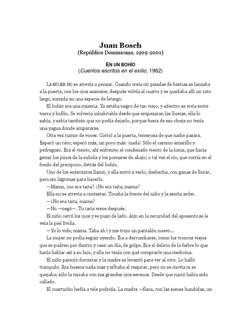 Juan Emilio Bosch Gavio 30 de junio de 1909 - 1 de noviembre de 2001 fue un cuentista ensayista novelista narrador historiador educador y poltico dominicano. Anabel Rojas M 31 Fecha. La pareja y su hijo de pocos aos comparten la miseria fsica y espiritual.