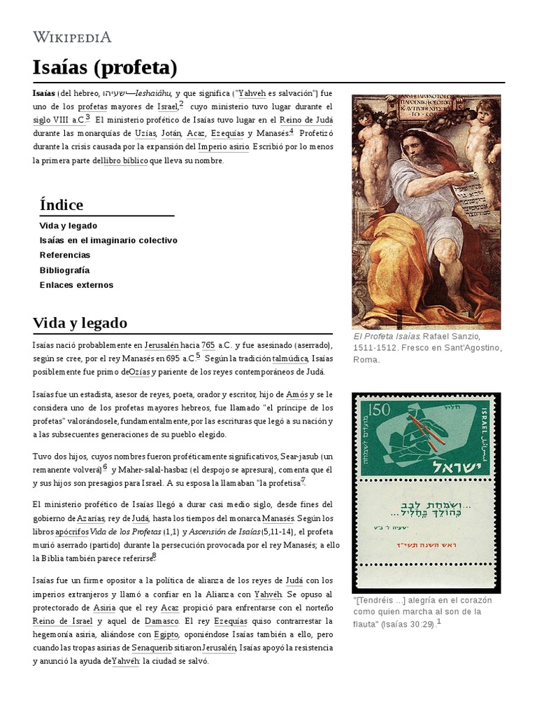 Es contra l que se dirigen muchas profecas de Isaas cap 7 8 y 9. l se hace referencia en ms de cien referencias en 2 Reyes 1 y 2 Crnicas Jeremas Oseas y Miqueas. Resumen de Elida y u familia.