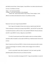 B1-2-Brve rsum de luvre sous-lorage de Seydou BADIAN Sous lorage o le triomphe de lamour met en scne un couple de jeune lettr dont lamour rciproque est contrari par les projets du pre BENFA. Met en scne un couple officieux de jeunes gens Kany et Samou dont lamour rciproque est contrari par les projets du pre de Kany Benfa qui entend selon la coutume lui faire pouser un riche et vieux marchand. A travers Sous lOrage Seydou Badian nous plonge au cur de son Soudan natal actuel Mali qui nest point une terre vierge de pass.